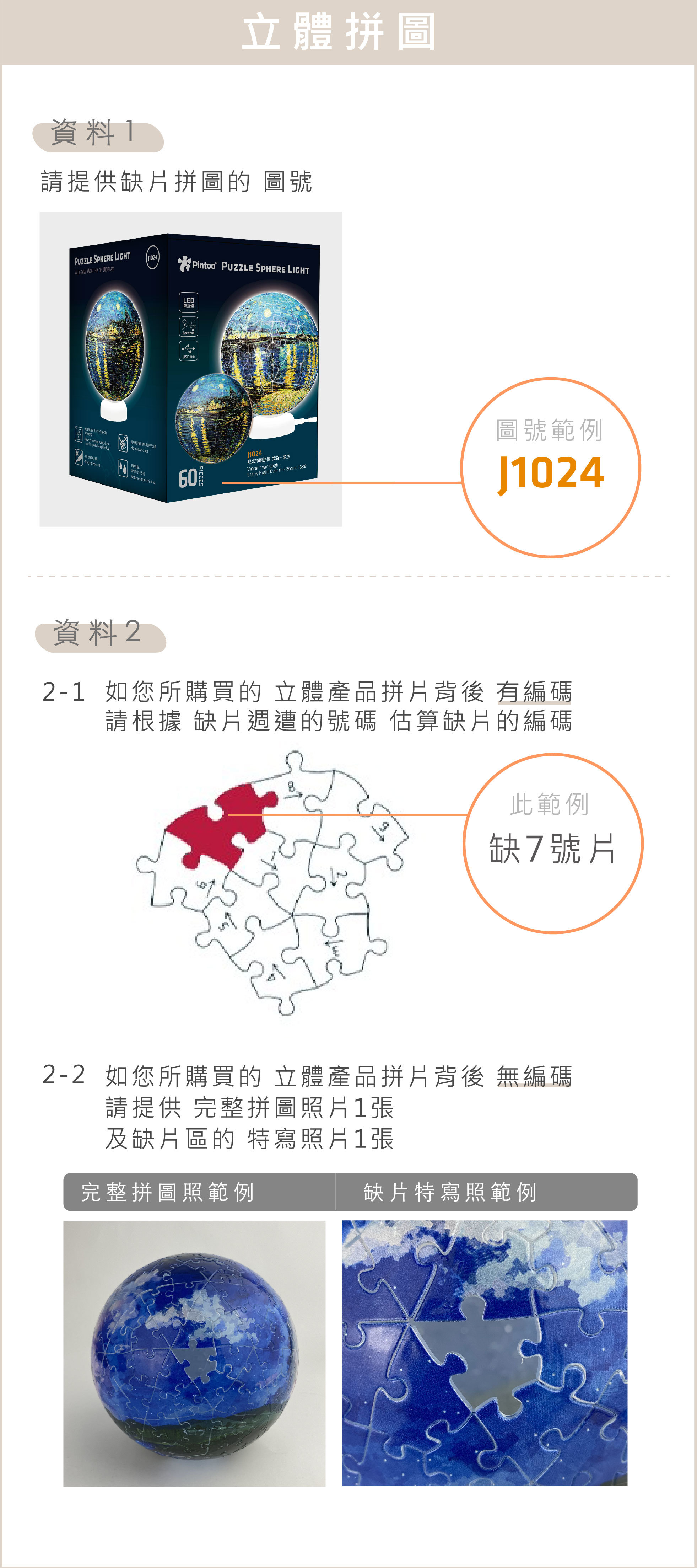 1.資料確認無誤後 Pintoo 將於 7-14個工作天盡快為您補上缺片。