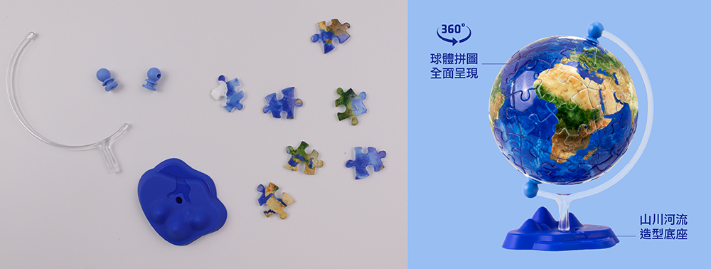 特殊弧形拼片,360度全面呈現,搭配“山川河流”造型底座