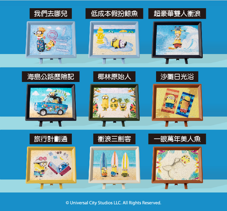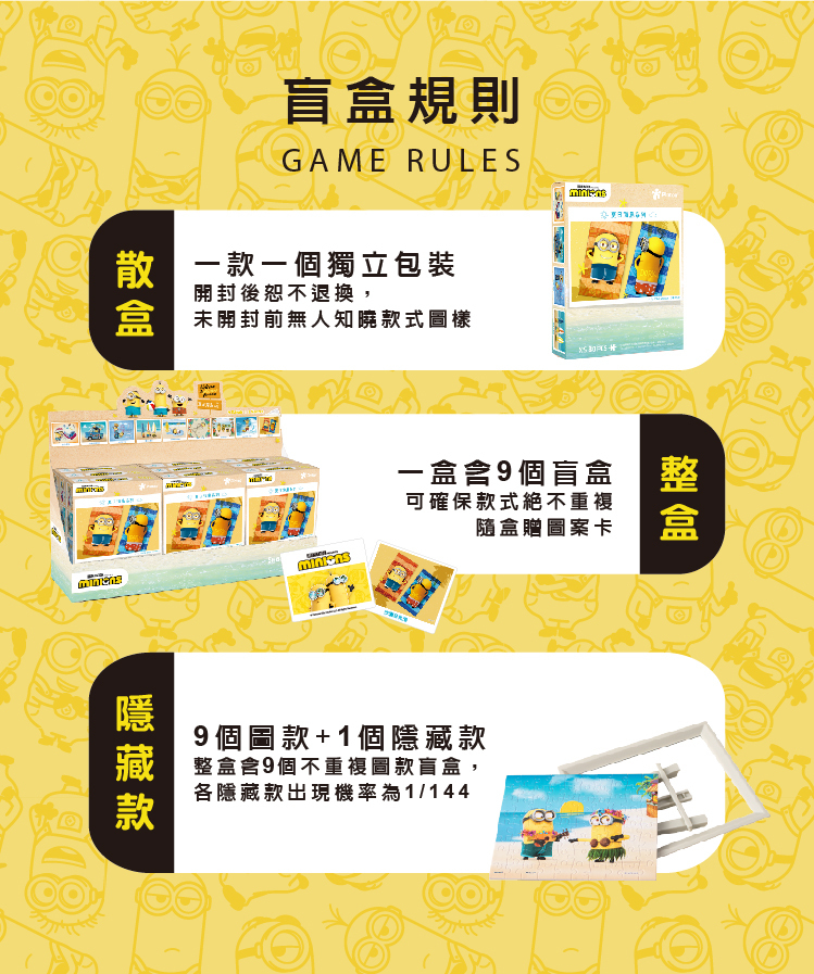 迷你80片盲盒拼圖 小小兵浪潮來襲,夏日海島系列共有9款圖案+1隱藏款
