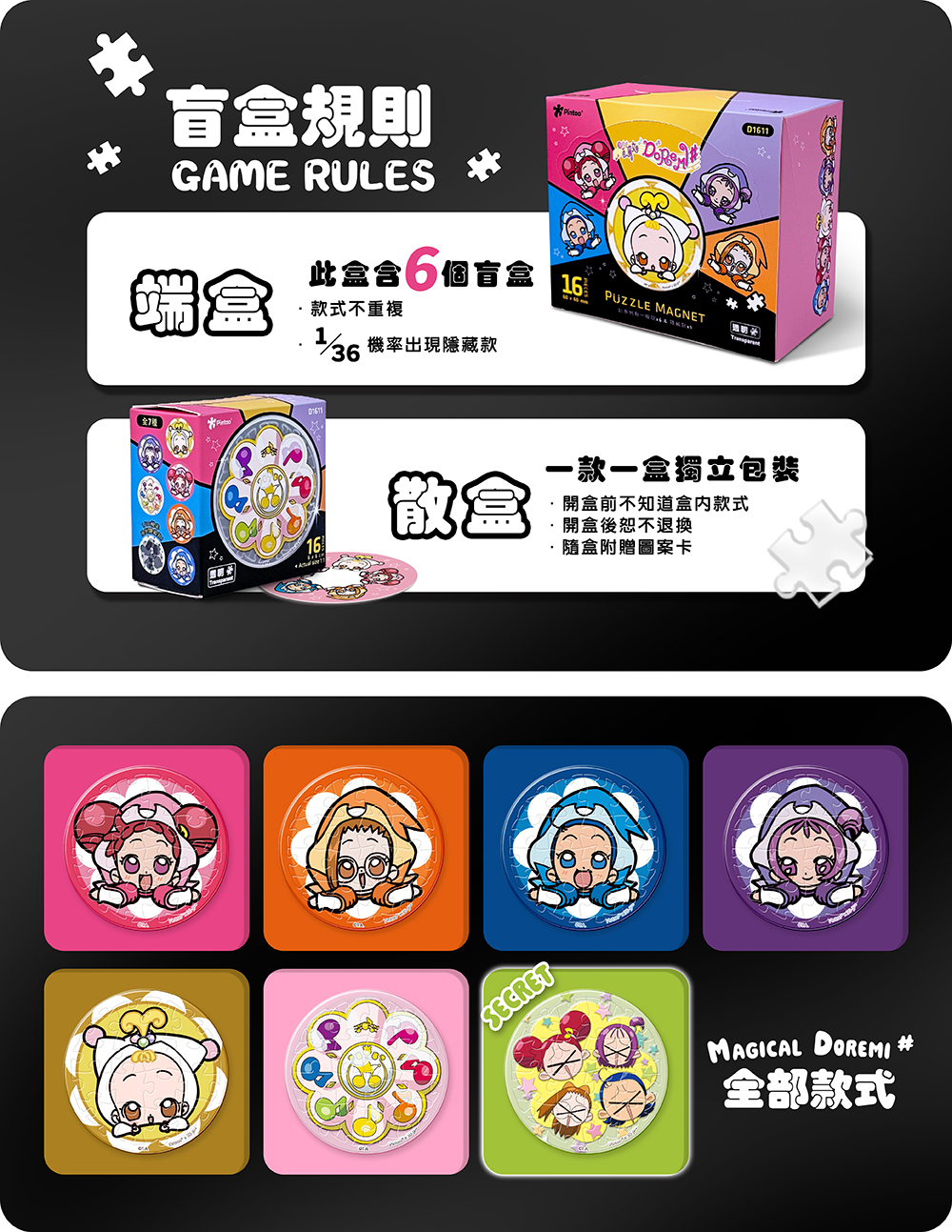 整盒有6入,款式有7款,6款常規款+1隱藏款隨機替換。