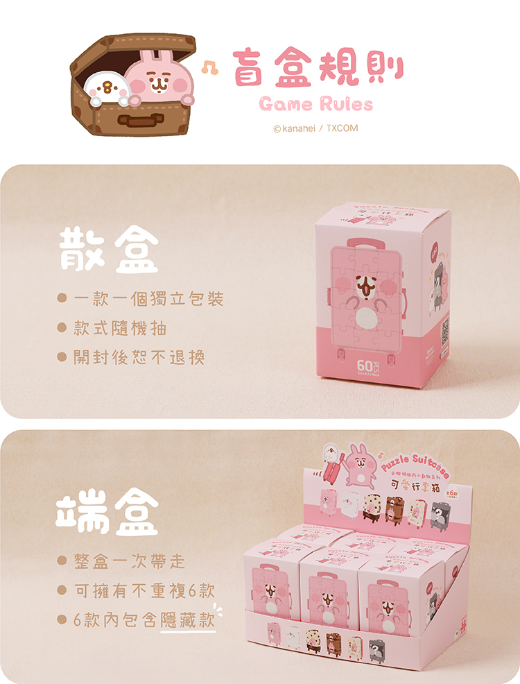 整盒有6入,款式有6款,購買整盒即可獲得所有款式。
