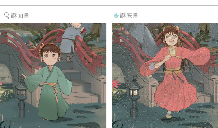 根據圖案上的線索,觀察其區別與關連性,一邊拼圖,一邊解謎!