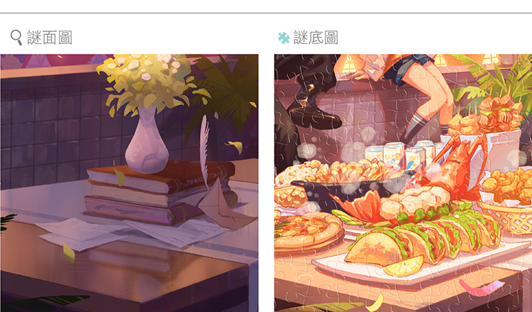 根據圖案上的線索,觀察其區別與關連性,一邊拼圖,一邊解謎!
