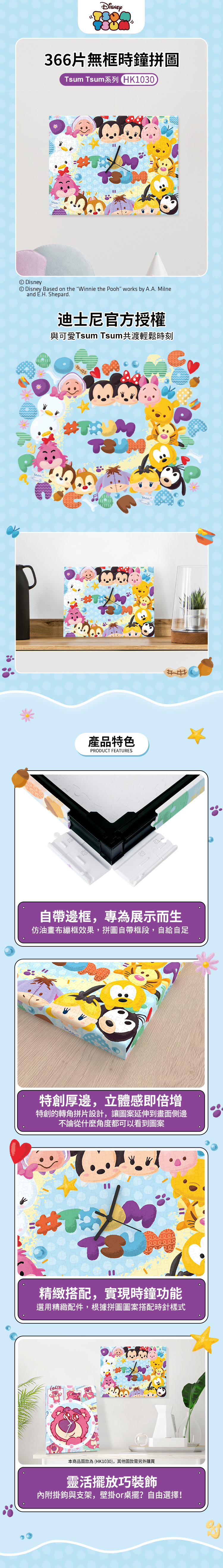 HK1030 - 無框時鐘366片 - Tsum Tsum系列 - 輕鬆時刻