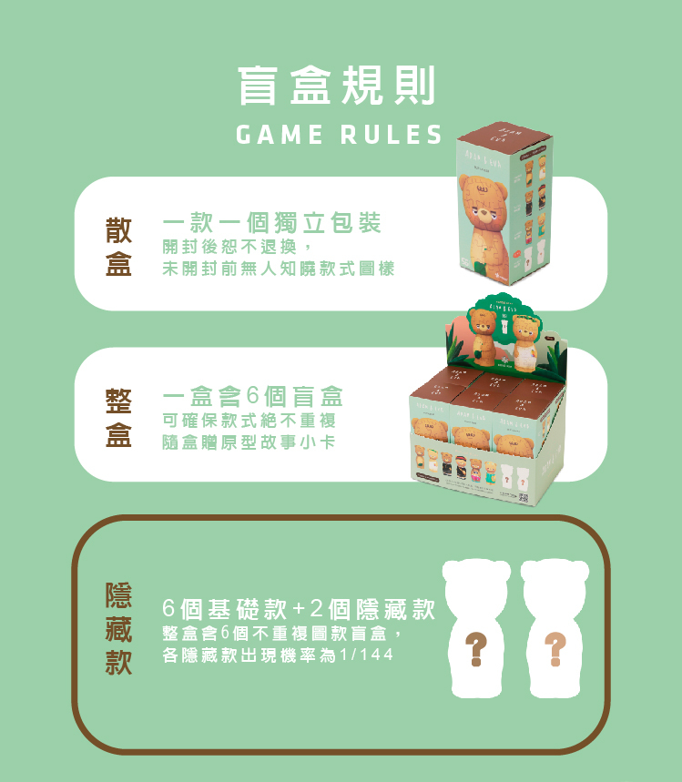 整盒有6入,款式有8款,6款常規款+2隱藏款隨機替換。