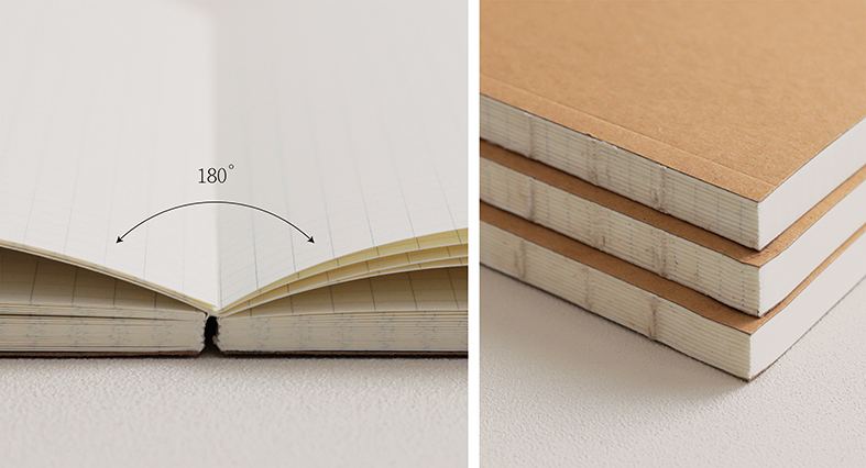 使 用 裸 背 線 裝 內 頁,可 180° 攤 平 攤 開,使 書 寫 更 方 便 順 暢。