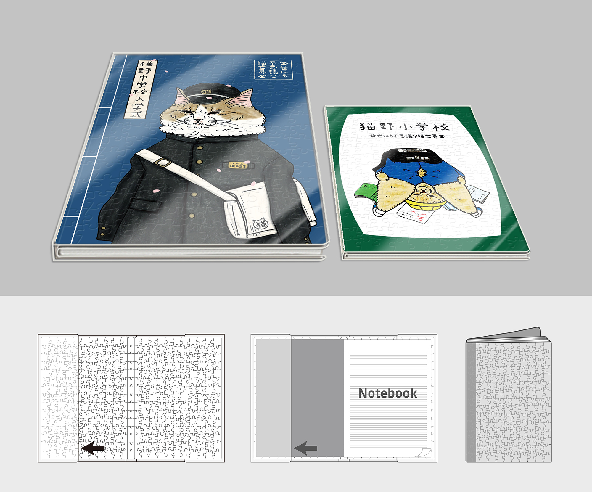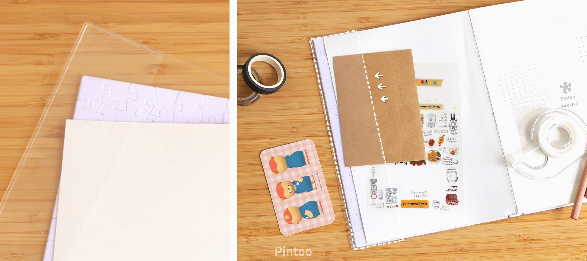 筆 記 本 由 透 明 書 套 + 書 衣 拼 圖 + 書 本 內 頁 組 合 而 成,