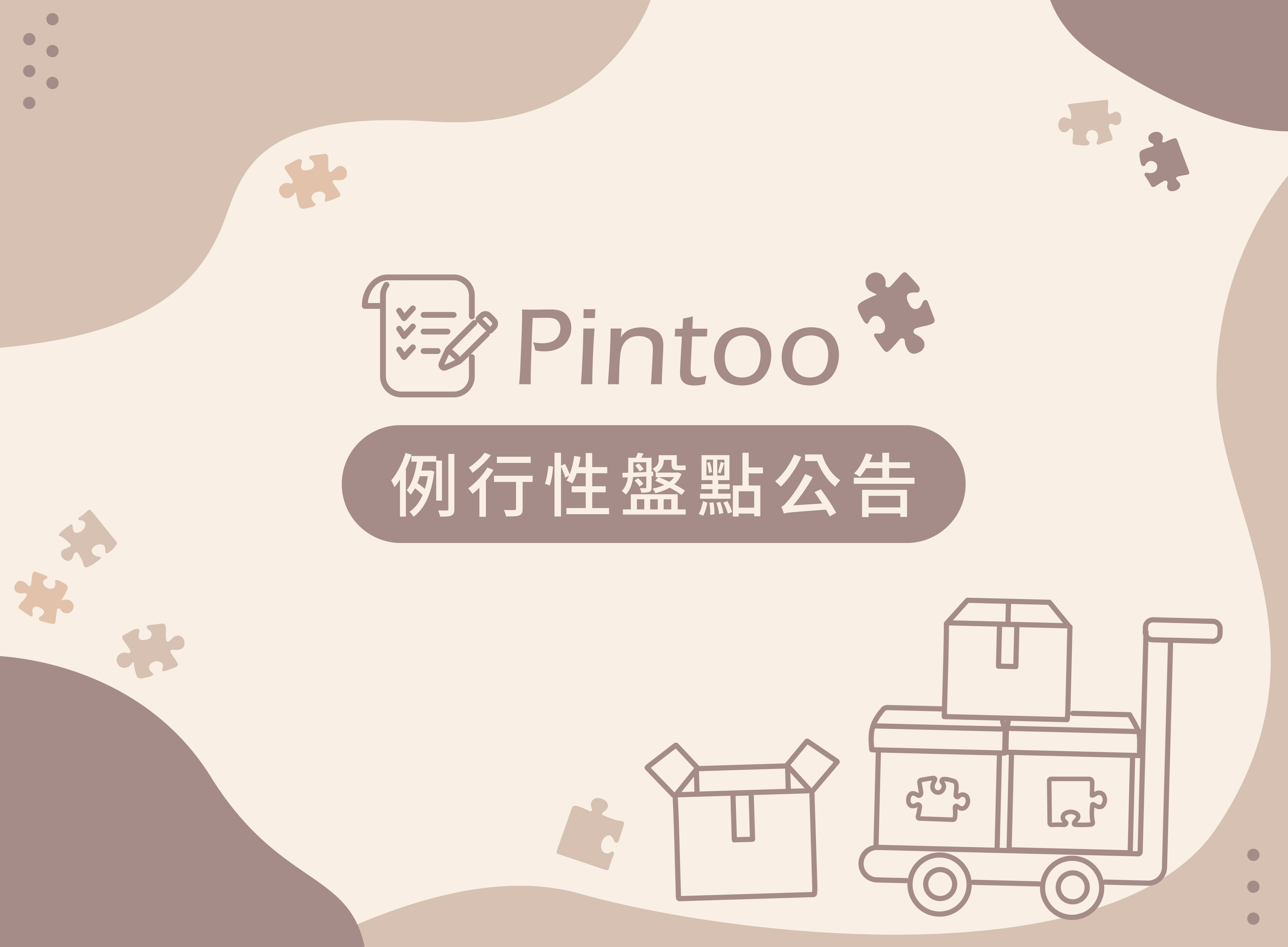 Pintoo 將 於 2023年5月16日 (二) ~ 2023年5月18日 (四) 三 天 進 行 例 行 性 盤 點。
