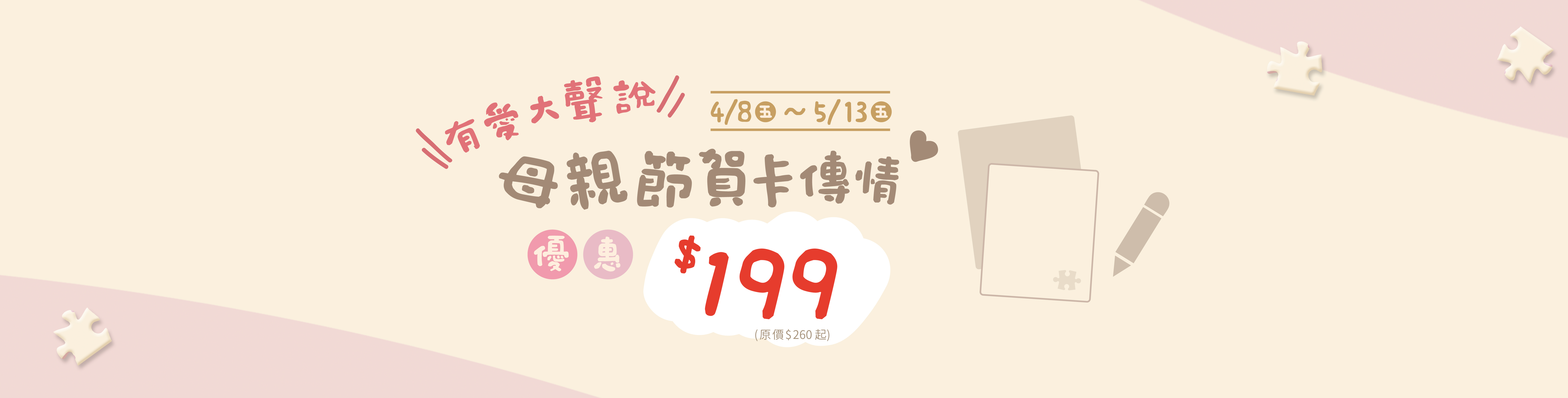 母 親 節 系 列 賀 卡 限 時 特 價 $199 (V1080、V1081、V1083 原價260,V1097、V1098 原價270)