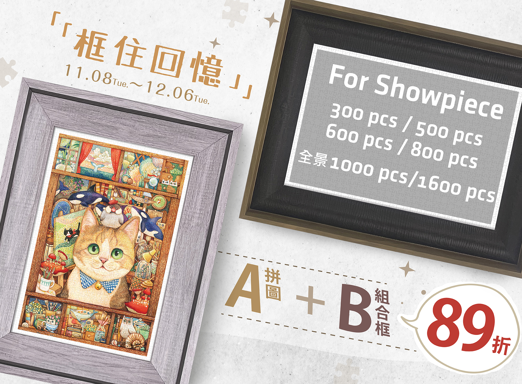 A 區 平 面拼 圖 (圖款任選) + B 區 組 合 框(2款擇1) 組 合 優 惠 89折
