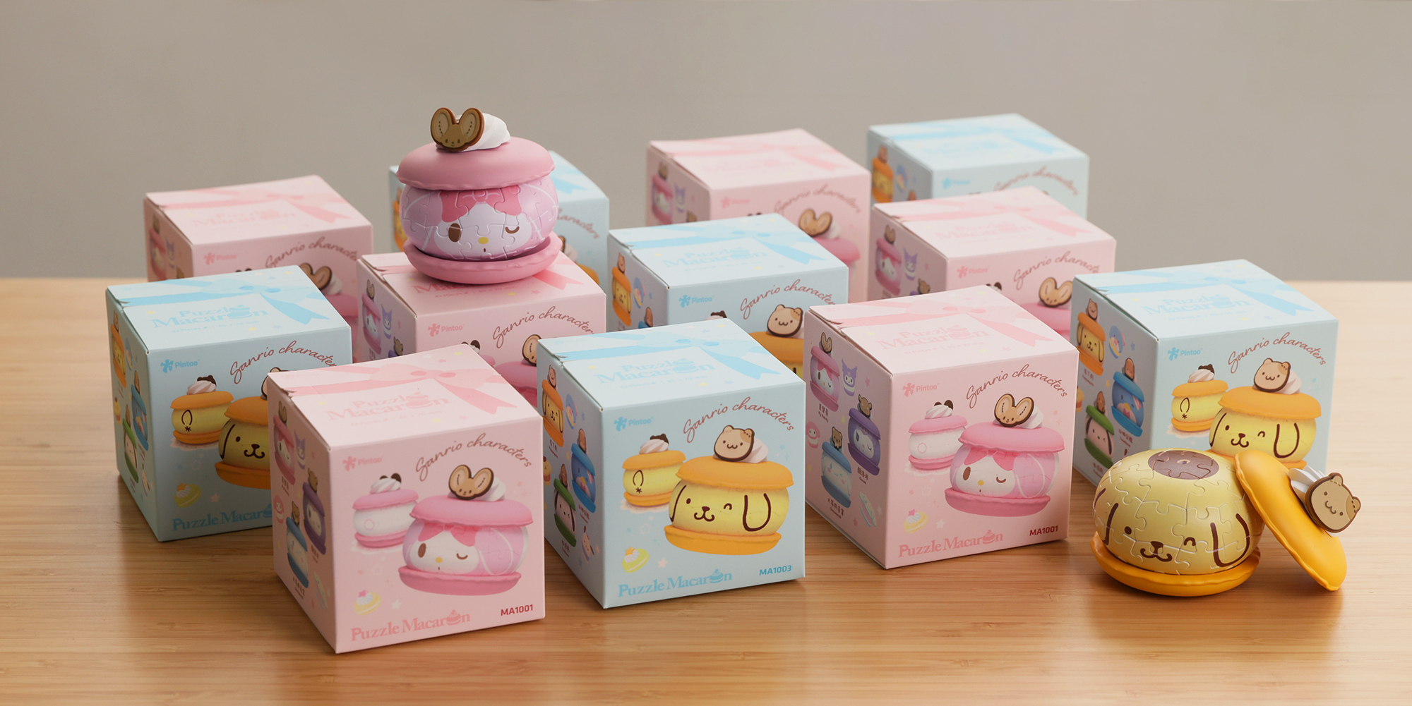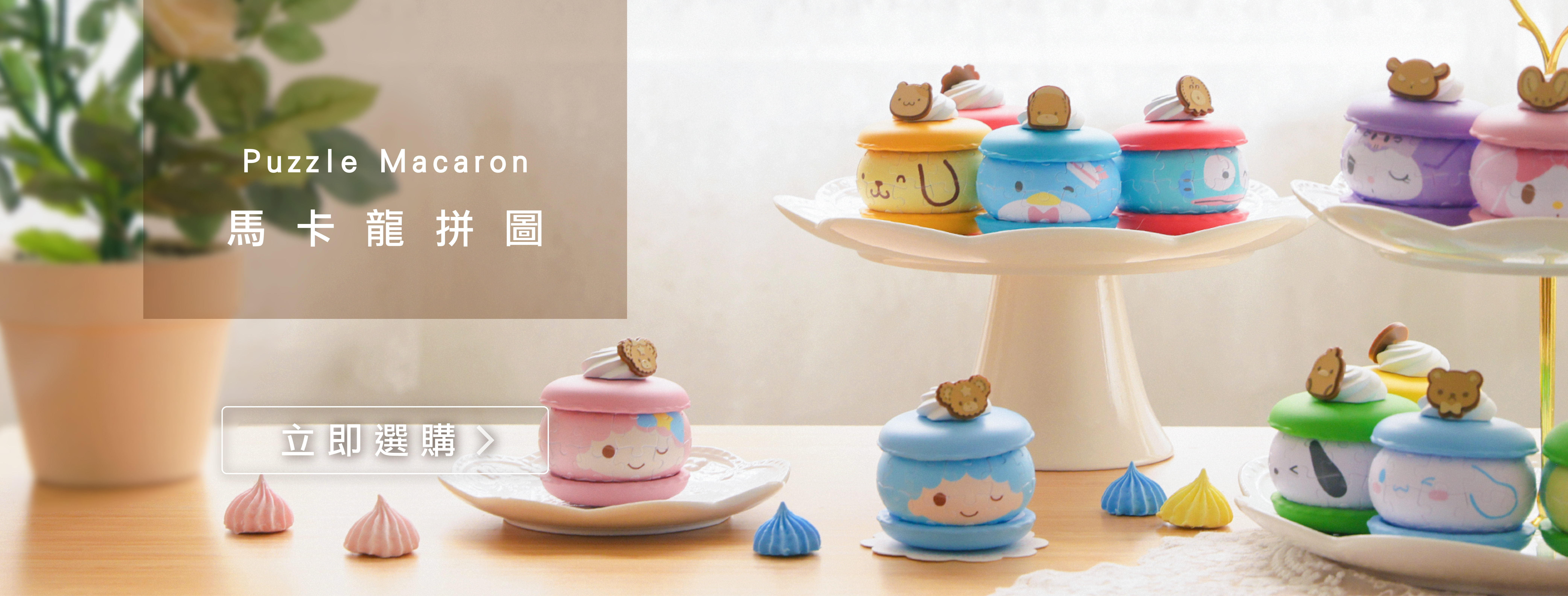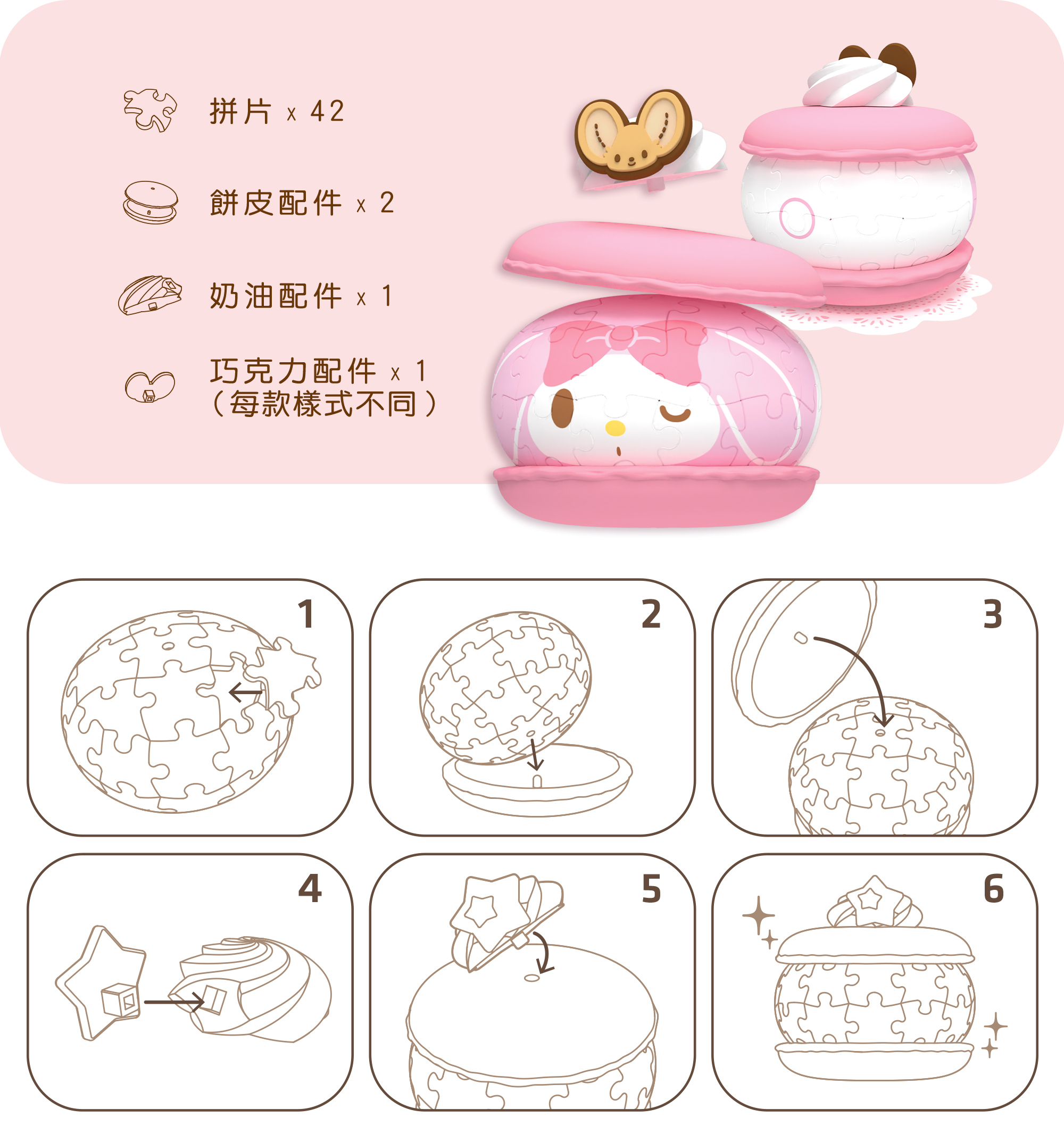 圓 弧 形 拼 圖 搭 配 各 IP 特 色 配 件 , 組 裝 成 造 型馬 卡 龍 擺 件 , 裝 點 生 活 !