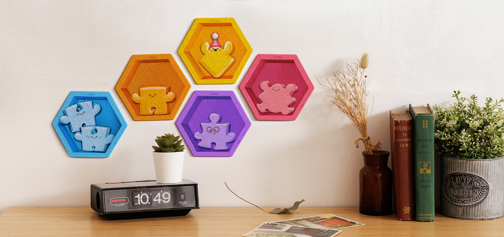 拼 接 無 需 膠 水 , 完 成 的 拼 圖 結 構 牢 固 不 易 散 落 。快 來 把 小 精 靈 們 帶 回 家 !