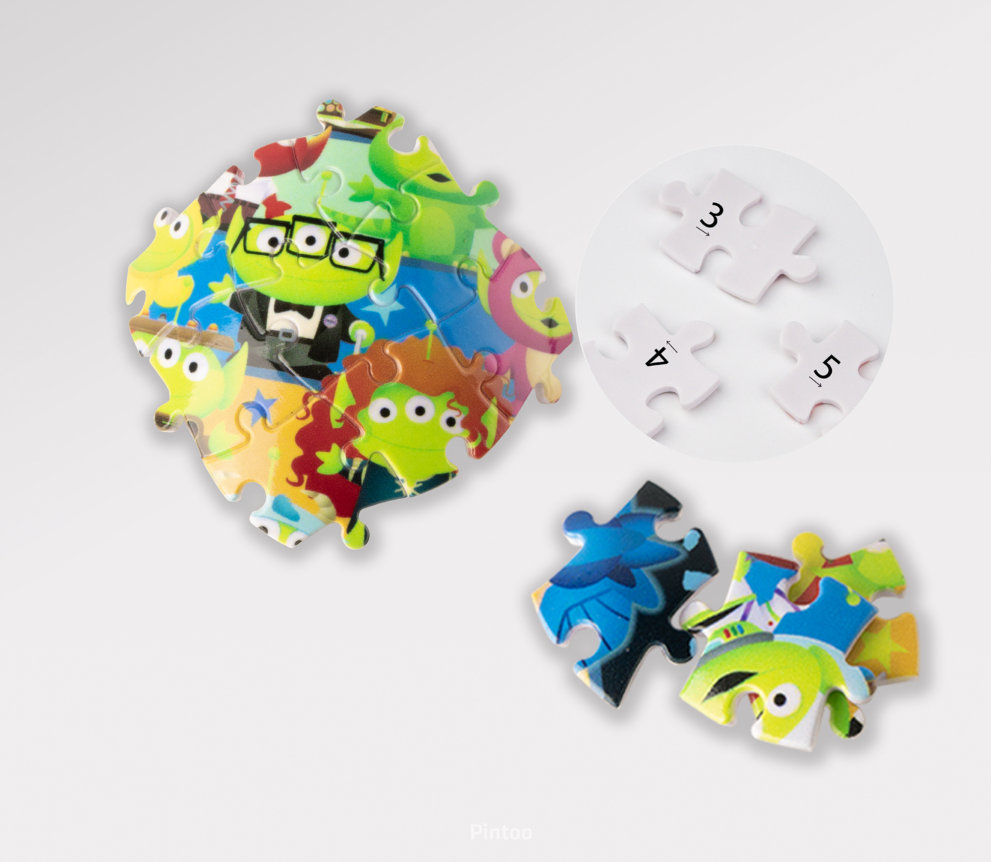 背 面 印 有 專 屬 編 號 , 可 依 照 個 人 喜 好 玩 法 , 改 變 拼 組 難 易 度 。