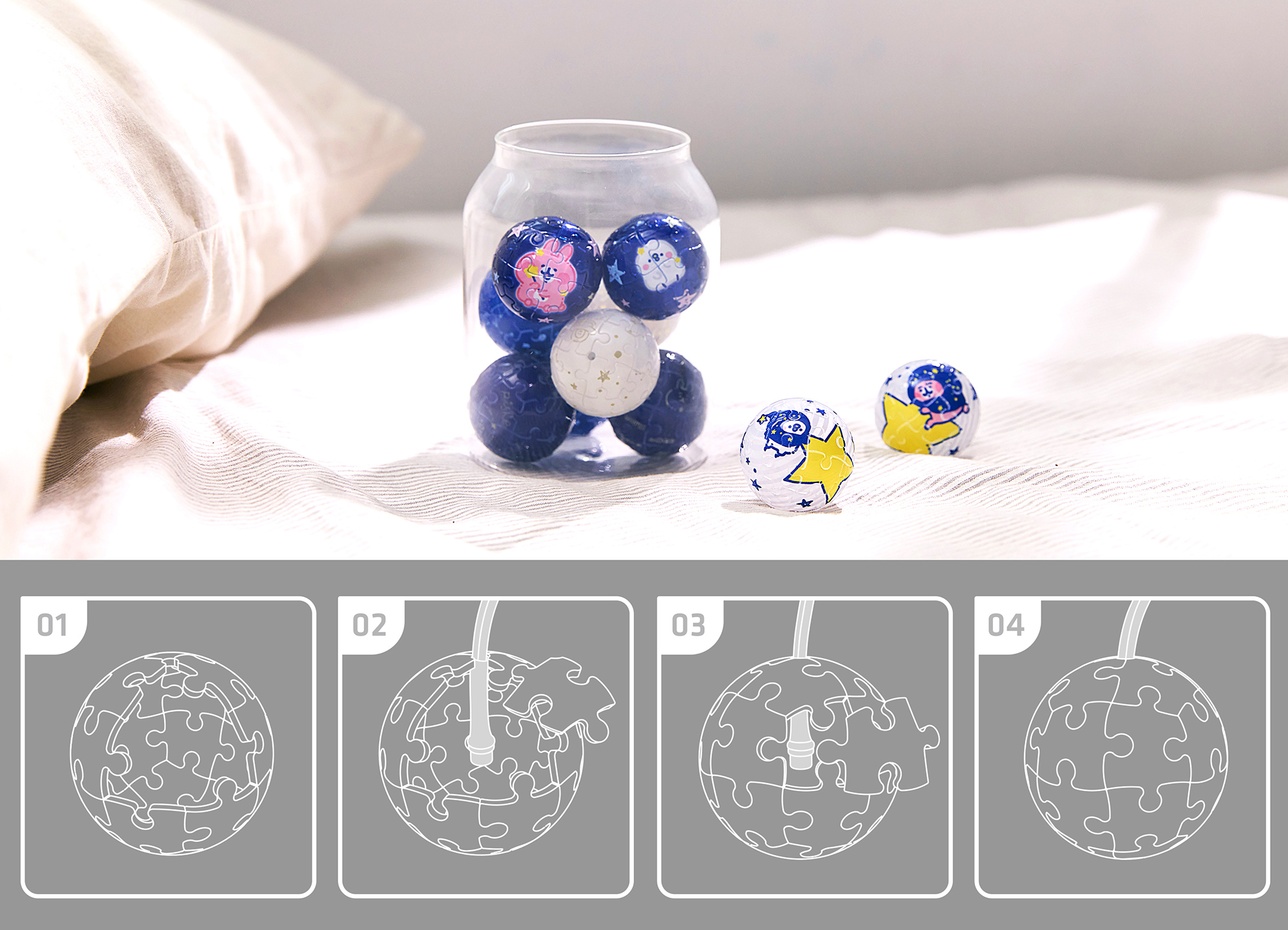 拼 接 無 須 膠 水 , 完 成 的 拼 圖 結 構 牢 固 不 易 散 落 。
