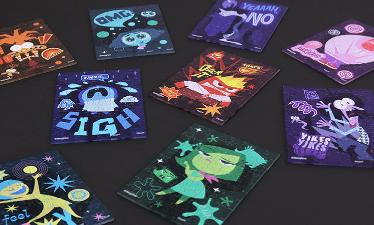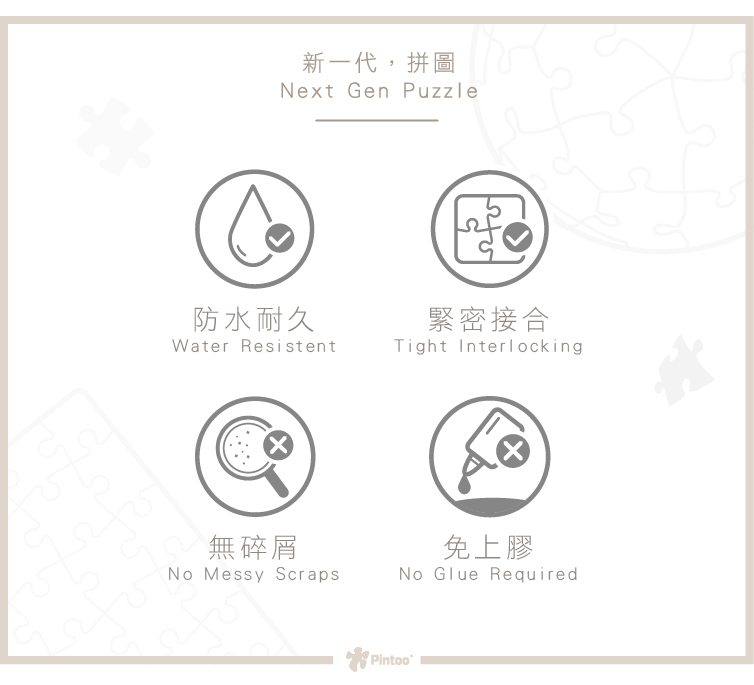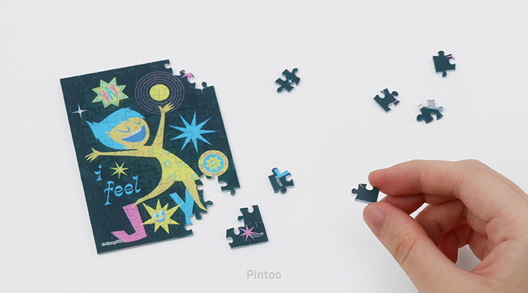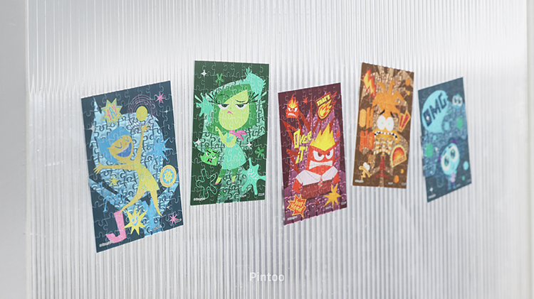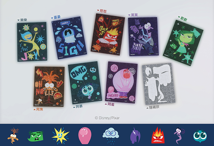 透明材質設計,放置於不同顏色的桌面,能看見隱藏於拼圖中的圖案。